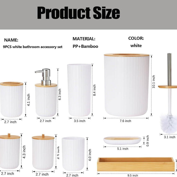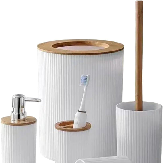 • COMPREHENSIVE SET: The 6-piece bathroom accessory set includes toilet brush, soap dispenser, toothbrush holder, tumbler, soap dish and wastebasket.